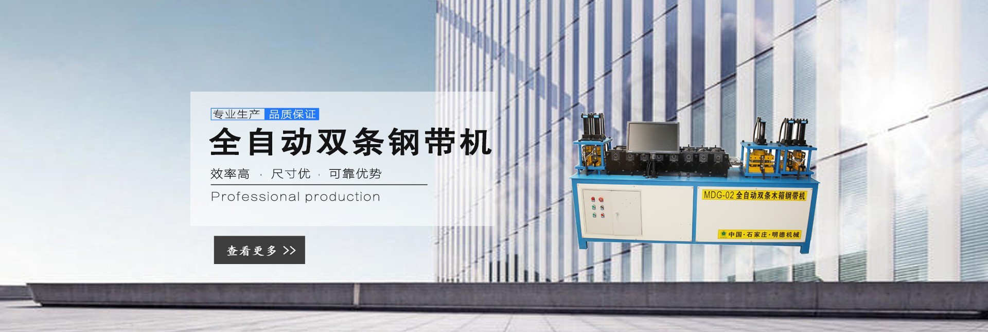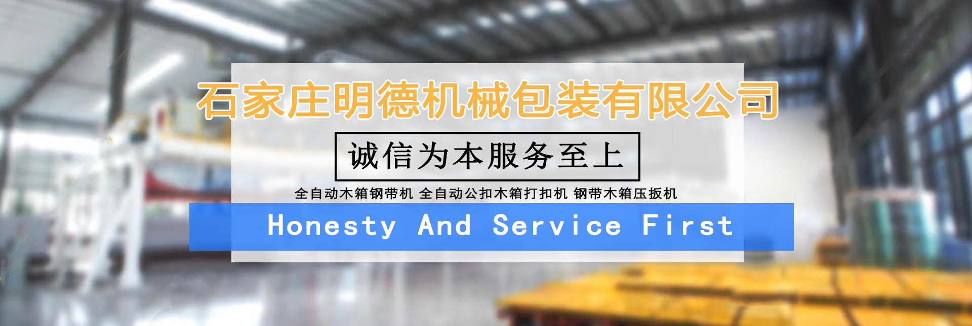 石家莊明德包裝機(jī)械有限公司,是國(guó)內(nèi)專(zhuān)業(yè)生產(chǎn)木箱雙條鋼帶機(jī)、美式托盤(pán)打釘機(jī)械、托盤(pán)刨槽機(jī)、倒角機(jī)、木包裝箱、木托盤(pán)的生產(chǎn)廠家,目前擁有廠房3000多平方米,自動(dòng)化生產(chǎn)設(shè)備數(shù)十套。 公司下轄包裝機(jī)械事業(yè)部,主要生產(chǎn)新型全自動(dòng)木箱鋼帶機(jī)、全自動(dòng)(半自動(dòng))木箱鎖扣機(jī)、折疊鋼帶箱機(jī)械、鋼帶箱壓板機(jī)、美式托盤(pán)自動(dòng)打釘機(jī)、托盤(pán)刨槽機(jī)、倒角機(jī)等相關(guān)鋼帶木箱機(jī)械、木工機(jī)械、配套產(chǎn)品,設(shè)備主體部分由高品質(zhì)機(jī)械和高精度模具組成,液壓系統(tǒng)、伺服系統(tǒng)和低壓配電單元的主要元器件,均選用西門(mén)子、施耐德等國(guó)際和國(guó)內(nèi)產(chǎn)品,大大提升了產(chǎn)品質(zhì)量,設(shè)備長(zhǎng)時(shí)間運(yùn)行穩(wěn)定可靠,獲得了用戶(hù)的一致好評(píng)。 公司下轄包裝制品事業(yè)部,主要生產(chǎn)各種實(shí)木木箱、膠合板鋼帶木箱和實(shí)木熏蒸托盤(pán)、歐標(biāo)托盤(pán)、美標(biāo)托盤(pán)、亞標(biāo)托盤(pán)及相關(guān)配套產(chǎn)品,木箱和托盤(pán)均選用優(yōu)質(zhì)九厘板材和俄羅斯原木作為原材料,從生產(chǎn)制造、成品組裝、出廠質(zhì)檢到送貨上門(mén),售后服務(wù)等,做到一條龍服務(wù),始終堅(jiān)持“把質(zhì)量做到更好,把成本降到更低,把實(shí)惠讓給客戶(hù)“的經(jīng)營(yíng)原則。